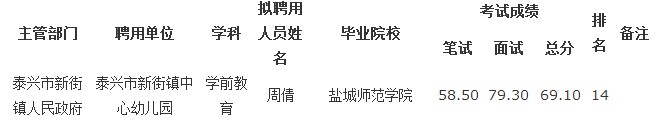 原标题:泰兴市2014年公开招聘教师拟聘用人员公示(三)